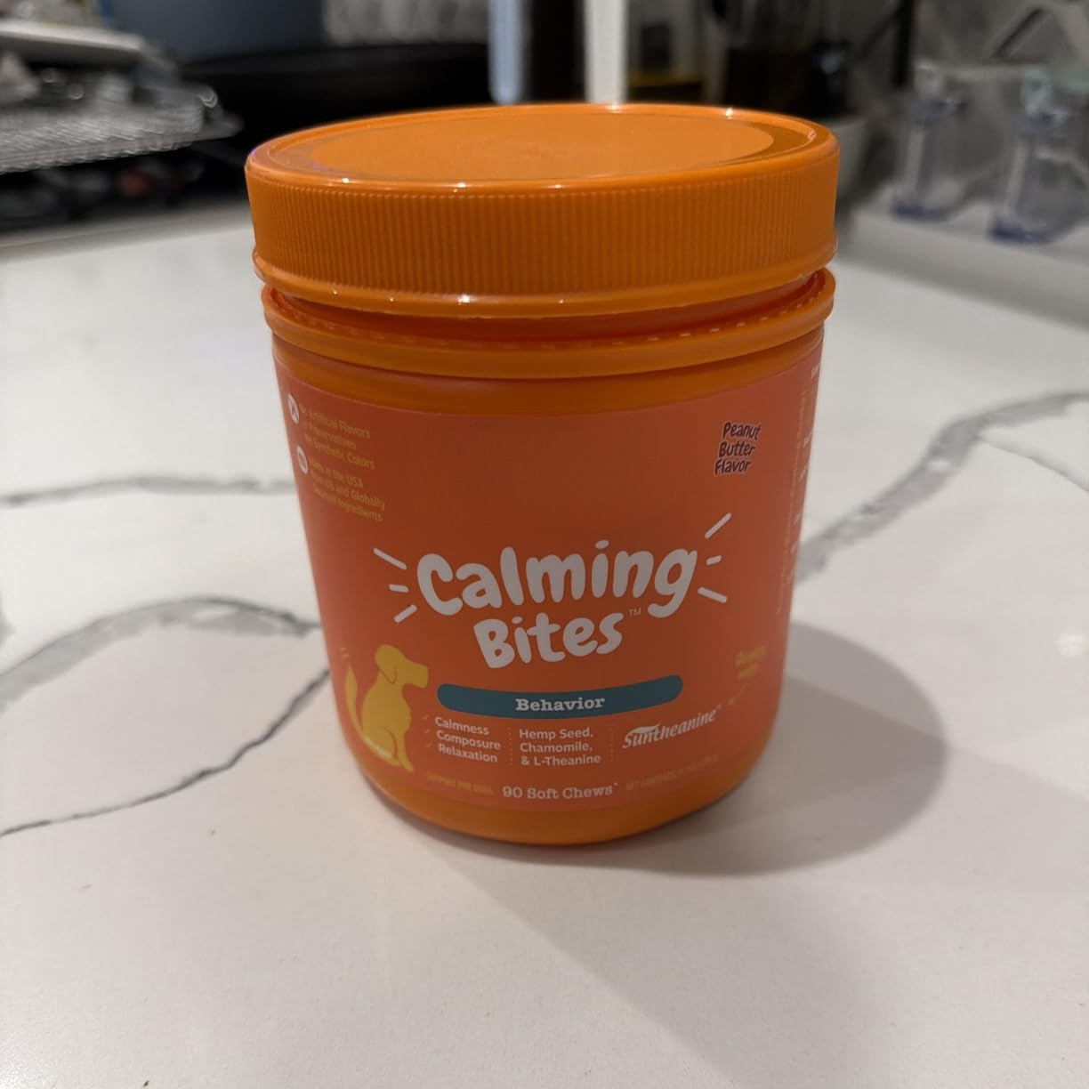 These help my crazy hyper dog so much. I used these on fourth of July and my dogs were all calm not scared like they normally are. I highly recommend these calming bites. It's a great price for these. And they smell like peanut butter. My dogs love them